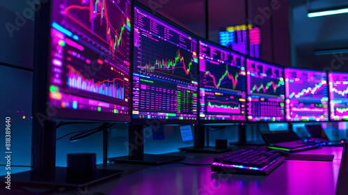 Close-Up of Multiple Computer Monitors Displaying - Technology Workspace Concept