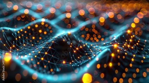 Close-up of nanometer-scale quantum dots embedded within a neural network, showcasing the integration of AI technology and quantum physics. Minimal and Simple style