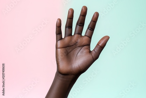 Close-up of open hand on gradient background