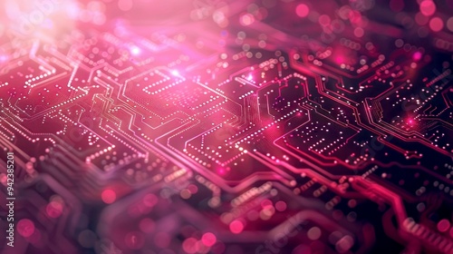 Close-up of Pink Circuit Board with Bokeh Lighting