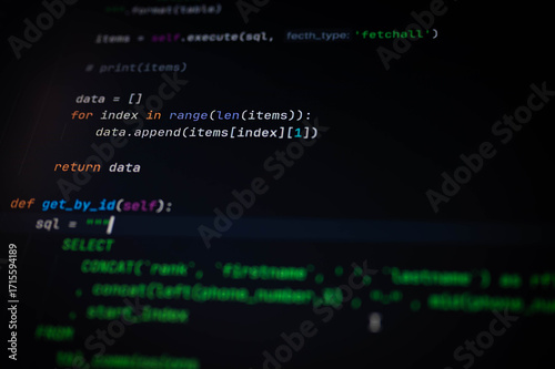 Close-up of Python loop extracting data from SQL results and defining a get_by_id function for targeted database queries. Ideal for backend development, data processing, and IT tutorials.