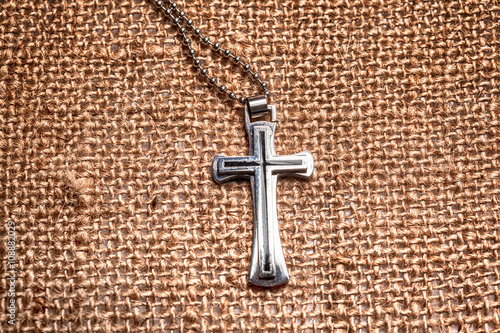 Closeup of silver Christian cross