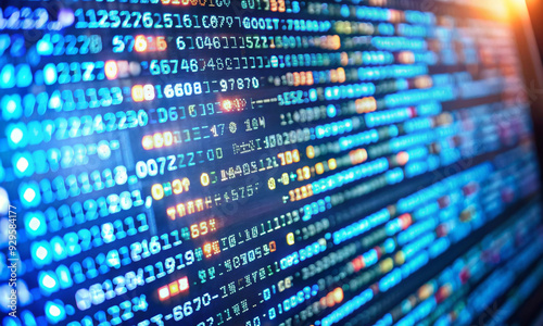 Close-up of the abstract blue and yellow lines of the data code
