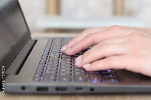 close-up of the hand of a businesswoman typing a keyboard on a laptop. the concept of business people and technology.