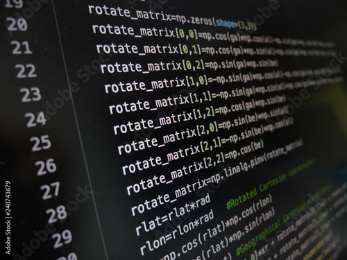 Closeup of the python code on the monitor