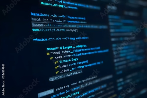 Close-up of the screen with code and web form, text code in the background. close-up view of a computer monitor