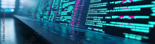 Close-up of vibrant digital code displayed on a sleek screen, representing technology, data, and modern programming.