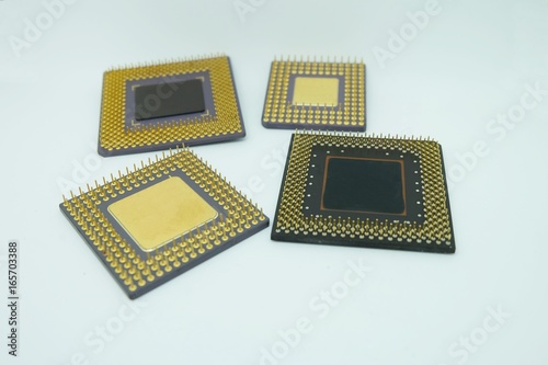 closeup old cpu processor on White background