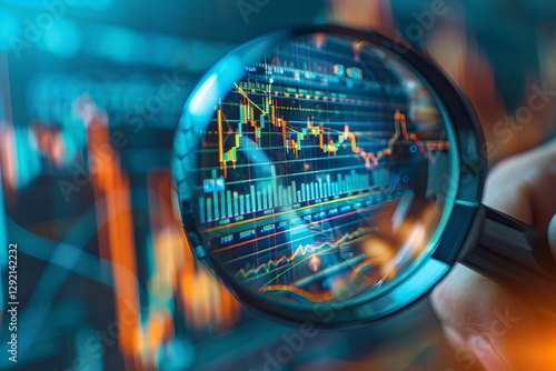 close-up shot of a hand holding a magnifying glass, focusing on a financial graph with upward trend, representing profit growth and investment management.