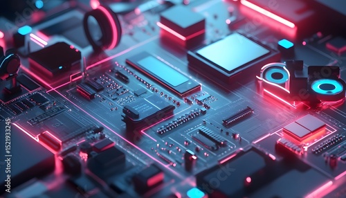 Close-up view of a complex circuit board with glowing components.
