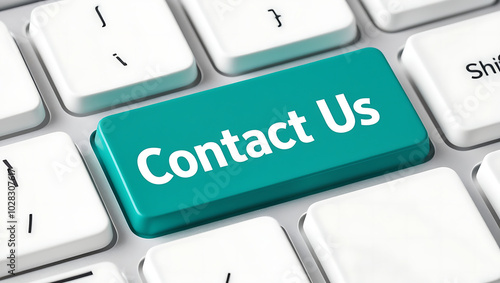 close-up view of a computer keyboard focusing on a unique Contact Us key. Contact us copy space