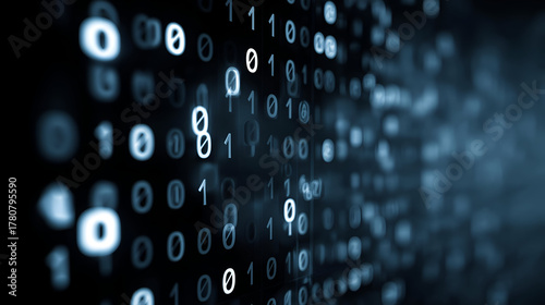 Close-up view of binary code on a dark background, representing data processing and technology innovations.