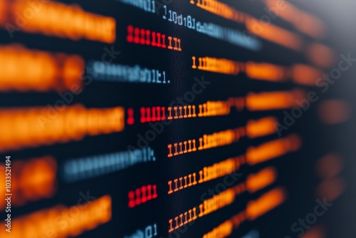 Close-up view of colorful code on a computer screen, representing programming, data processing, and software development.