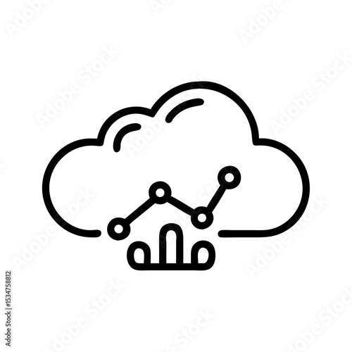Cloud Analytics Icon Representing Data Analysis in Cloud Computing with Line Graph and Bar Chart Symbol in Minimalist Outline Style