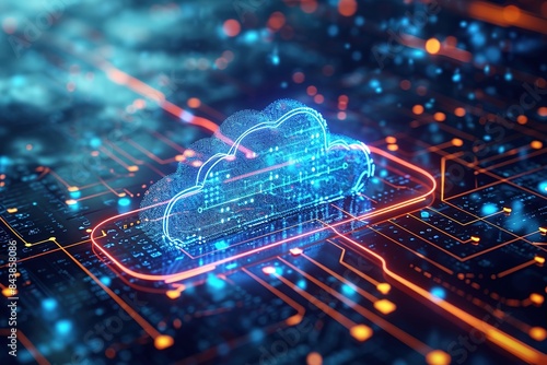 Cloud and Edge computing concept. Modern IT technology on virtual screen, data backup with Edge computing industry 4.0, cloud storage innovative background. Internet of things.