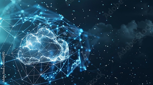 Cloud and edge computing technology concept cybersecurity data protection White cloud with binary code connected polygons on dark blue background Connect business networks in the digit : Generative AI