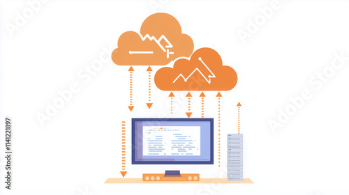 Cloud Backup Concept with Data Transfer and Binary Code Streams