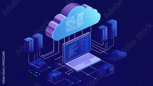 Cloud Backup Concept with Data Transfer and Binary Code Streams