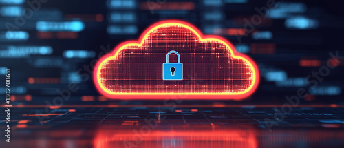 Cloud based file storage concept. Digital cloud with a padlock symbolizing security and data protection.