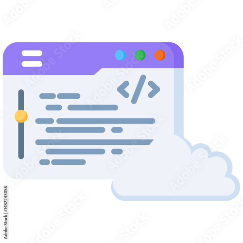 Cloud coding flat color icon. Simple vector icon design in flat color style. Editable vector format