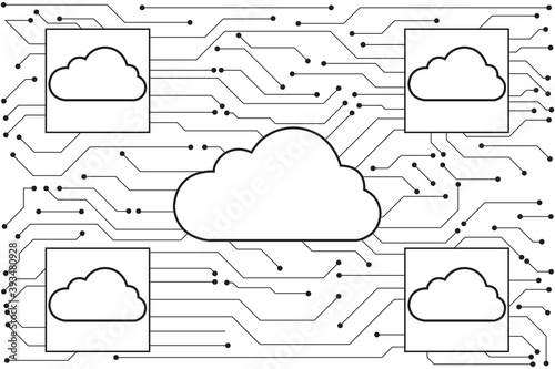 Cloud computing and network security technology concept, Circuit board with cloud symbol and connection links. vector illustration