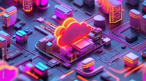 Cloud Computing Cityscape Neon Digital Infrastructure