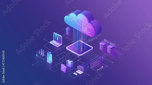Cloud computing. Cloud storage technology concept background. Data transfer.