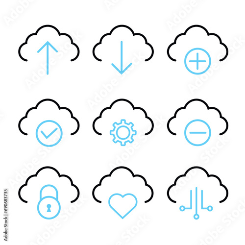 Cloud Computing, Computer cloud and Cloud Hosting related line icons Vector.