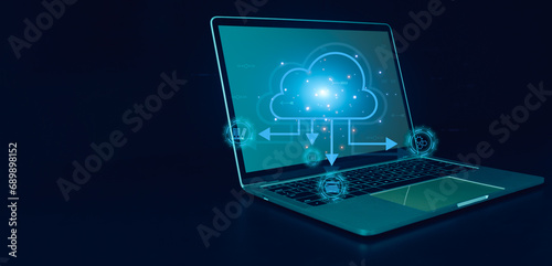 Cloud computing concept, connect communication equipment information and technology with cloud computing and technology icon.