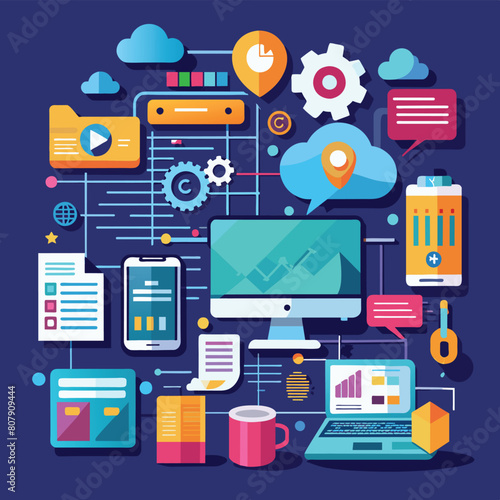cloud computing concept illustration, Coding and software development visuals