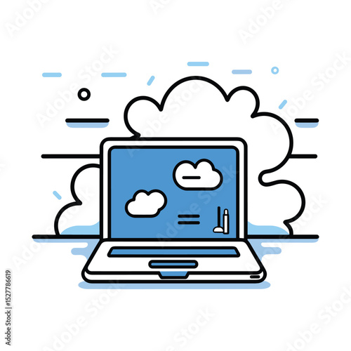 Cloud Computing Concept Illustration with Laptop and Cloud Icons – Modern Flat Design
