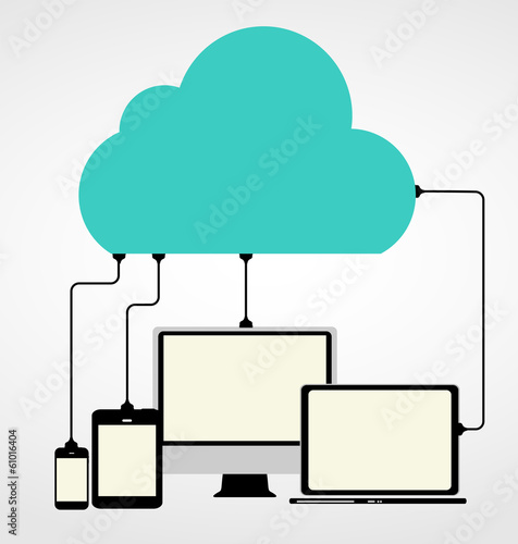 Cloud Computing Concept on Different Electronic Devices. Vector