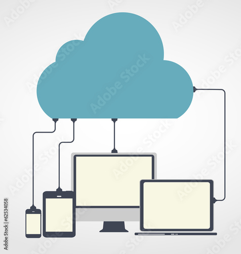 Cloud Computing Concept on Different Electronic Devices. Vector