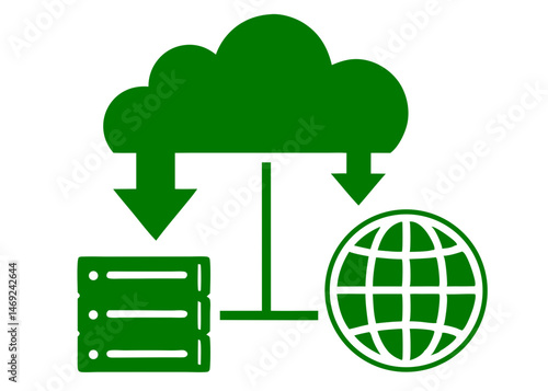 Cloud computing concept represented with servers and global data transfer illustration