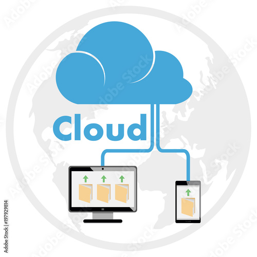 Cloud computing concept. Sending the folder to the computer cloud.