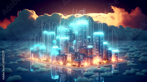 Cloud computing concept. Smart city wireless internet communication