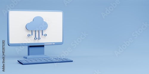 Desktop computer with cloud computing symbol on the screen 3d rendering