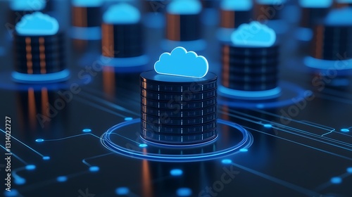 Cloud Computing Concept with Data Storage and Virtual Cloud Icons for Network Technology Themes