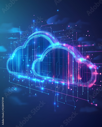Cloud computing concept with data transfer between devices in a clean vector style. Vector illustrations concept