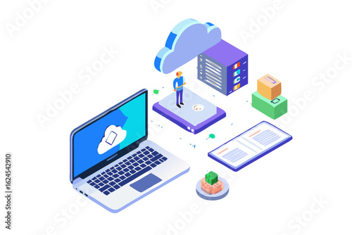 Cloud computing concept with devices and data storage