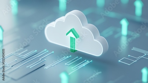 Cloud Computing Concept with Graphical Upload Arrow Over Digital Network Background