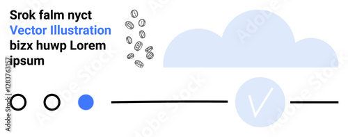 Cloud computing concept with symbols of a cloud, binary digits, and user interface elements including circles and a check mark. Ideal for technology, data storage, cloud services, online platforms