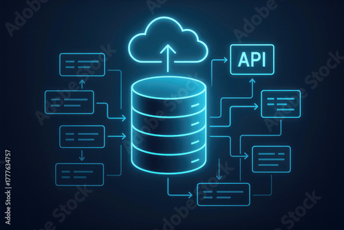 Cloud Computing Database Network with API and Data Flow Diagrams