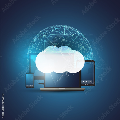 Cloud Computing Design Concept with Electronic Devices - Digital Network Connections, Technology Background