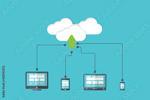 Cloud Computing. Devices connected to the cloud. Vector illustration