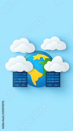 Cloud computing Global Network Cloud Computing Data Server Illustration