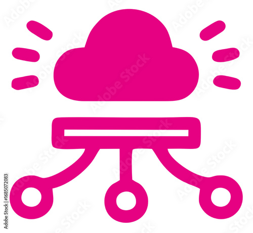 Cloud computing icon with connected nodes, neon outline