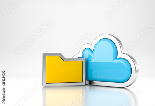 Cloud Computing internet Symbol concept with folder icon on white background. 3D rendering.
