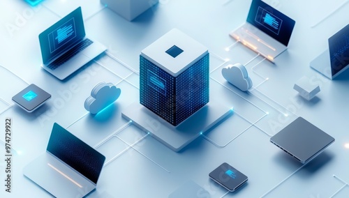 Cloud Computing Isometric Illustration With Server Blocks