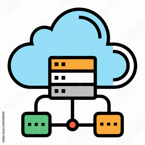 Cloud Computing Network Data Storage and Processing Illustration with Connected Elements